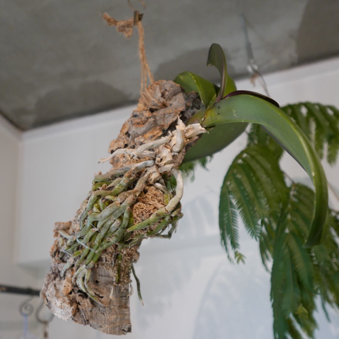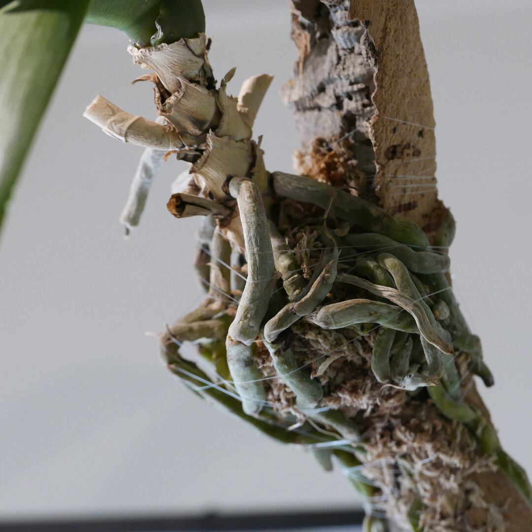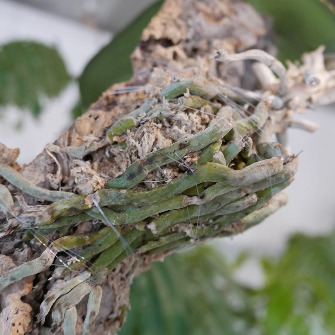 花が落ちた苗を、テグスでコルク固着させたものとなります。